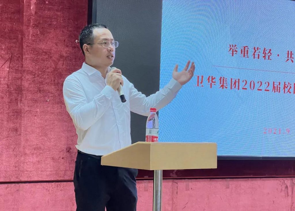 YY易游m6米乐集团董事长韩红安赋诗一首致敬武汉理工大学,并与到会学生代表分享了国际形势与民族崛起的感悟,阐述了YY易游m6米乐集团的发展历程和未来规划。