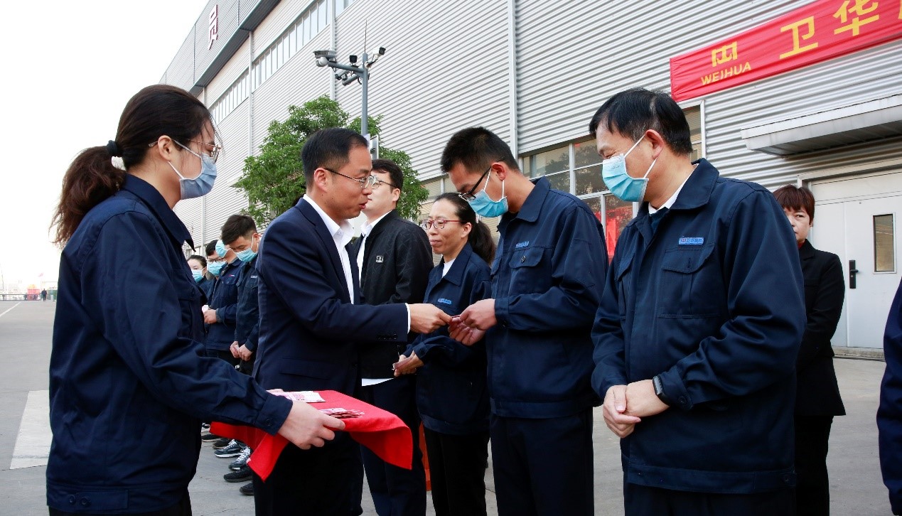 崔鹏和谢保华分别为质量先进班组和个人颁发奖金及荣誉证书