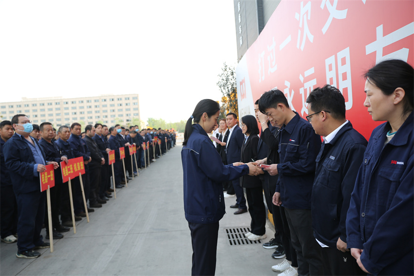 为切实增强全体一线员工质量安全工作的使命感、紧迫感和责任感,努力开创公司高质量发展新局面,2023年4月19日,河南YY易游m6米乐重型机械股份有限公司召开2023年一季度质量安全奖励大会,执行总裁谢保华,质量安环中心总监钮鹏超,制造管理中心副总监代艳云、孙朋,以及生产系统各部门负责人和全体一线员工参加会议。会议由质量安环中心副总监王爽主持。