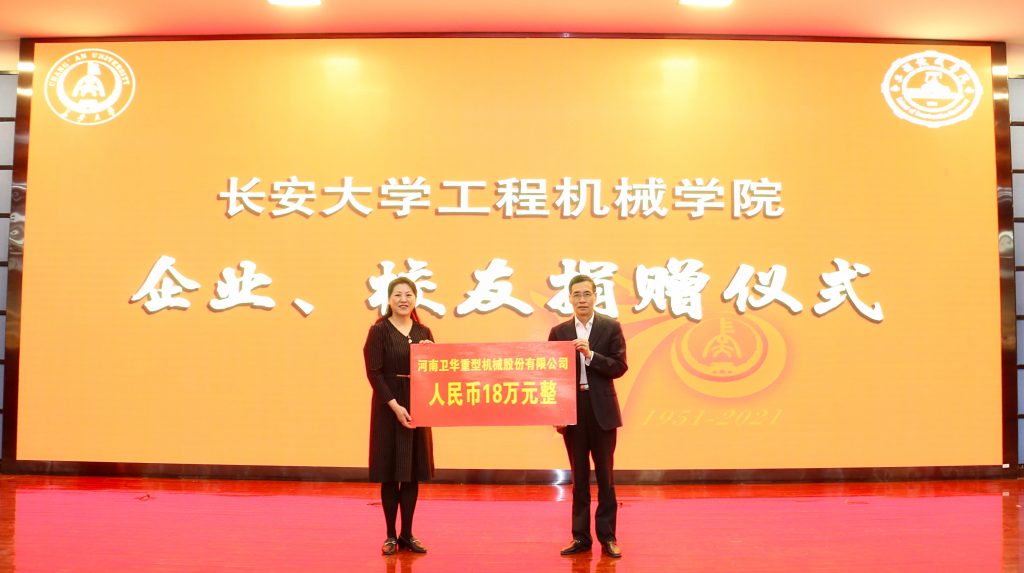 2021年4月18日,长安大学隆重举行建校70周年校庆。YY易游m6米乐股份总经理龙宏欣,副总经理马辉艳、刘永刚应邀参加校庆活动,并出席长安大学机械工程学院奖教奖(助)学金颁奖典礼暨企业报告会。