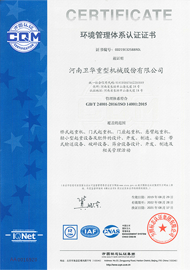 国家级环境管理体系认证证书